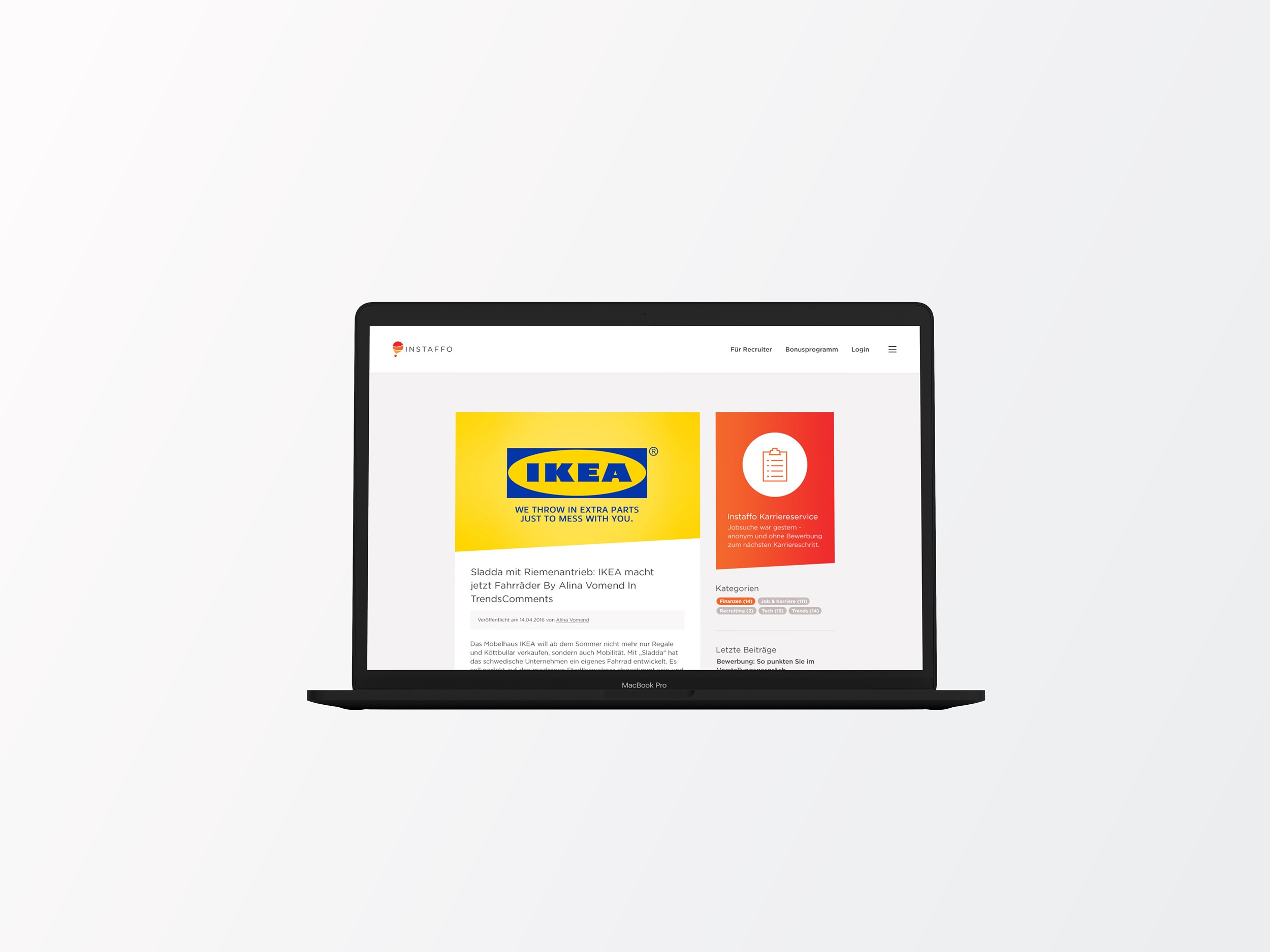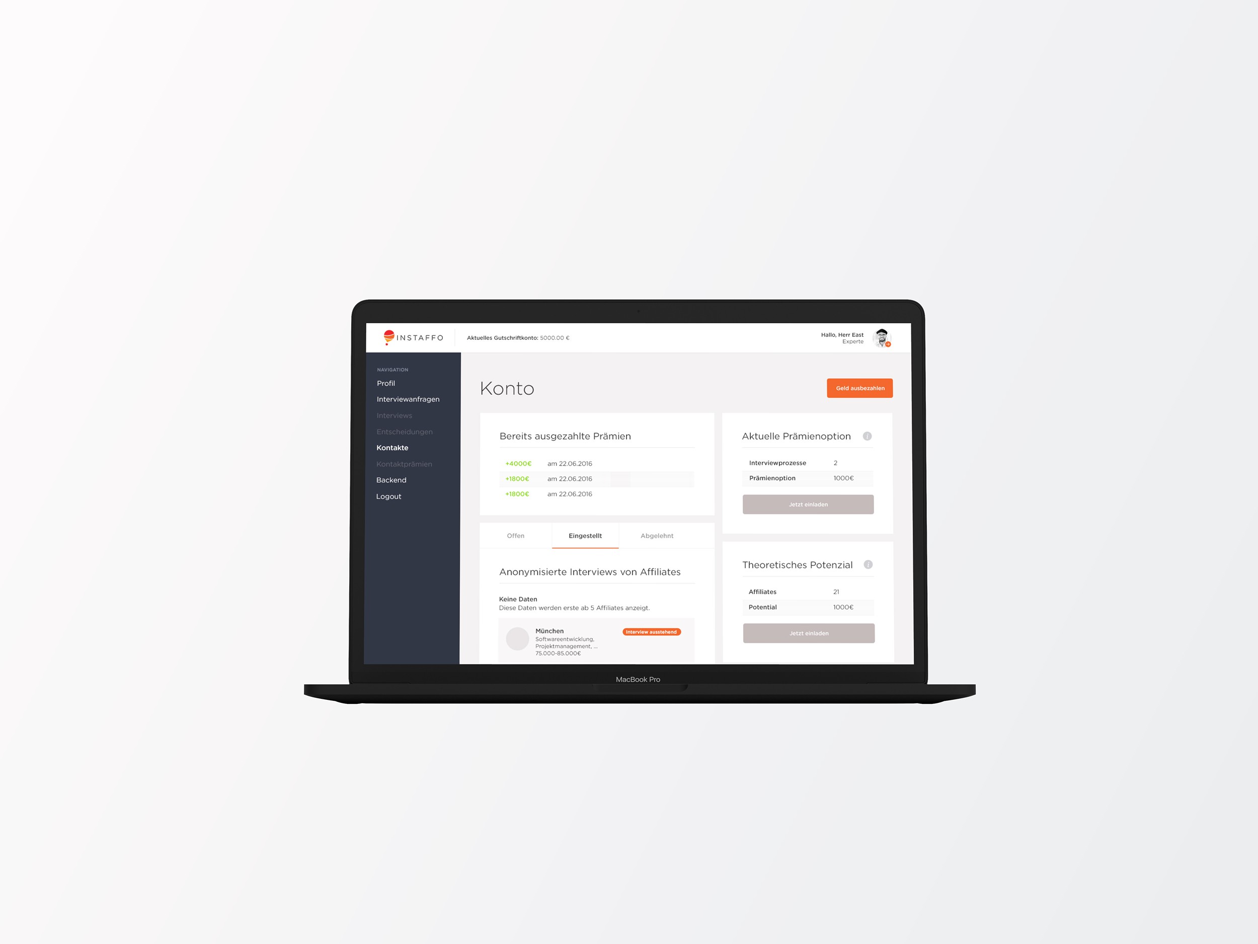 Das UX/UI Redesign der Instaffo Website beinhaltete die Neugestaltung der Landing Page und die Überarbeitung der Frontend- und Backend Templates, einschließlich des Newsletters, um eine benutzerfreundliche Oberfläche für den effizienten Austausch von Technik-, Marketing- und Verkaufstalenten zu schaffen.
